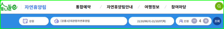 강릉시 대관령 자연휴양림 예약방법은 숲나들이에서