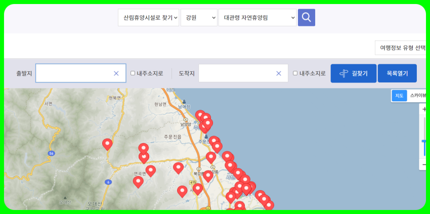 숲 나들이 e 사이트에 길 찾기가 있어서 가까운 곳 볼거리 먹거리를 바로바로 확인할 수 있으니 좋고 편의시설이 잘 되어 있기에 불편함이 없어서 더더욱 대관령 자연휴양림이나 다른 자연휴양림을 찾는 것 같다 제주도 한 달 살기를 해 보았기에 강원도에서도 한달살기를 꼭 해 보고 싶은데 기회가 되면 바로 시행할 것이며