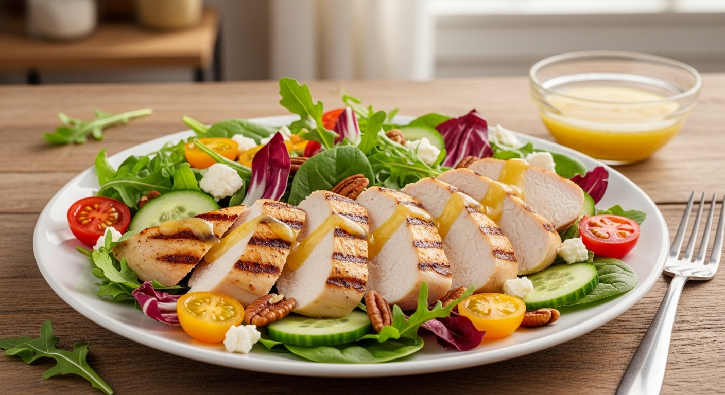 이럴 때 가장 추천되는 식사는 단백질이 풍부하면서 소화가 잘되는 닭가슴살 샐러드예요. 복합 탄수화물, 건강한 지방, 비타민과 무기질까지 함께 섭취할 수 있어서 운동 후 회복에 최적의 식단이에요.