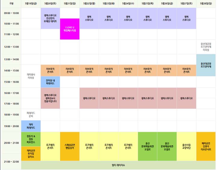 시간대 별로 행사 일정이 자세히 적혀 있으니 보고 싶은