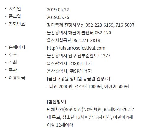 울산대공원 장미축제 입장료는 아래에 있습니다
