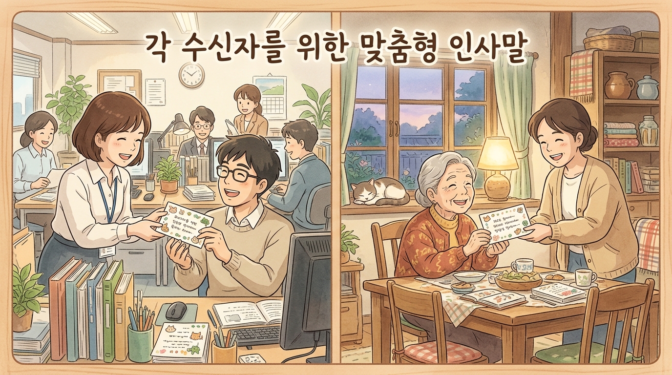 상대에 따라 온도차를 두어야 합니다. 직장 상사에게는 격식을, 친구에게는 위트를 섞는 것이 포인트입니다.