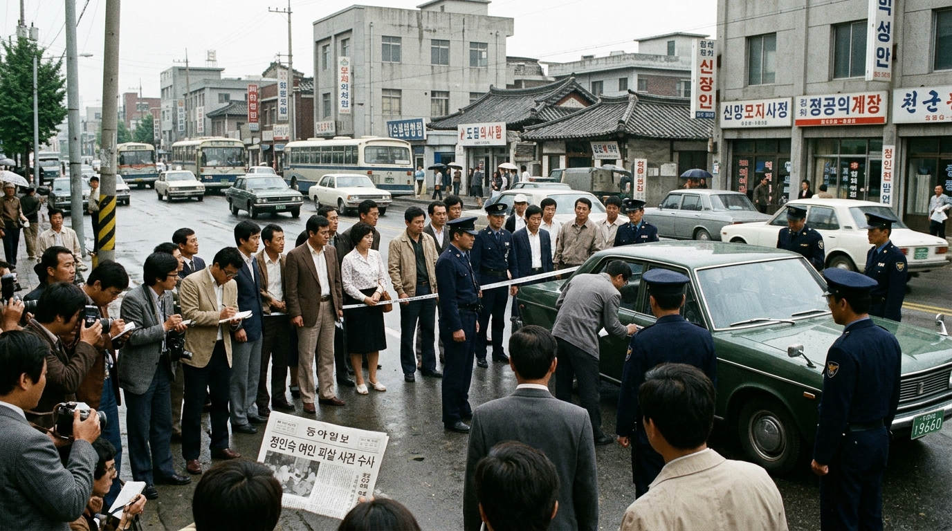 그날 밤 11시경, 서울 마포구 강변로(현 강변북로) 인근에 세워진 검은색 코로나 승용차 안에서 총성이 울렸습니다. 차 안에는 미모의 여성 정인숙과 그녀의 오빠 정종욱이 타고 있었습니다. 정인숙은 가슴과 머리에 총탄을 맞고 현장에서 즉사했으며, 오빠 정종욱은 허벅지에 관통상을 입은 채 구조되었습니다. 평온하던 서울의 밤은 이 총성 한 방으로 발칵 뒤집혔습니다.