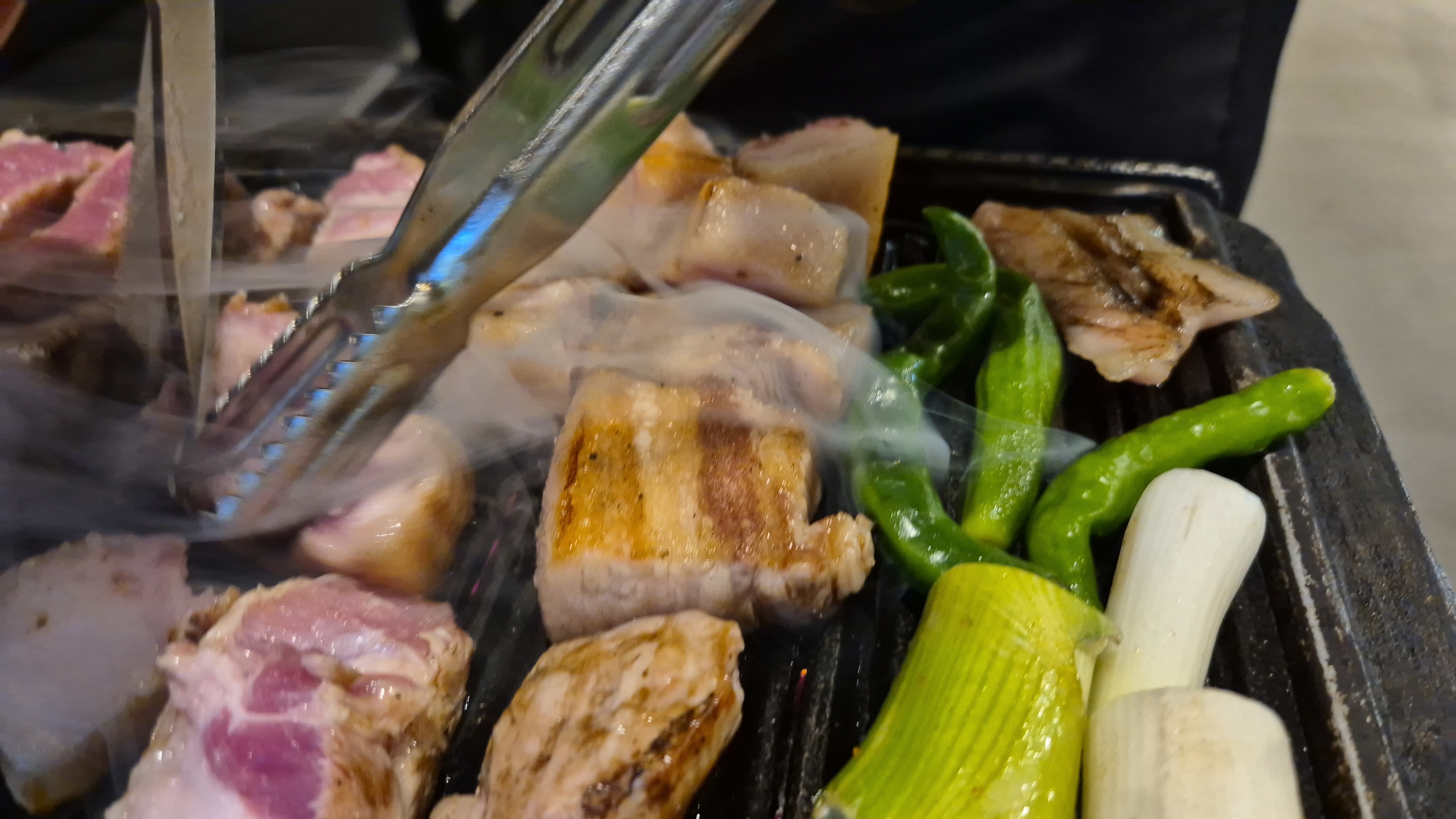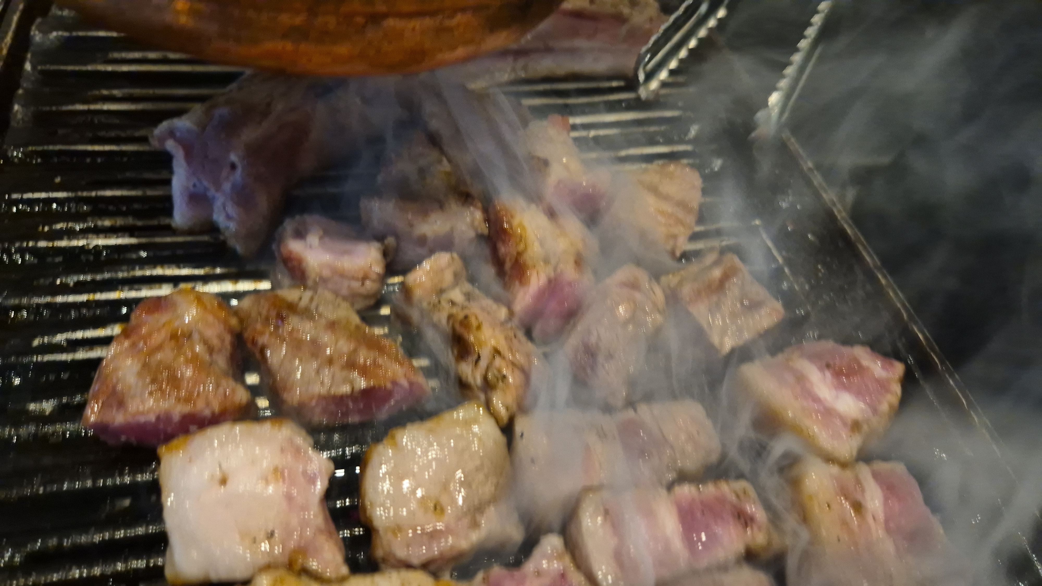 - 그릴을 강불에서 먼저 예열하고, 고기를 올린 후 2분 정도 겉을 바삭하게 익혀줍니다.