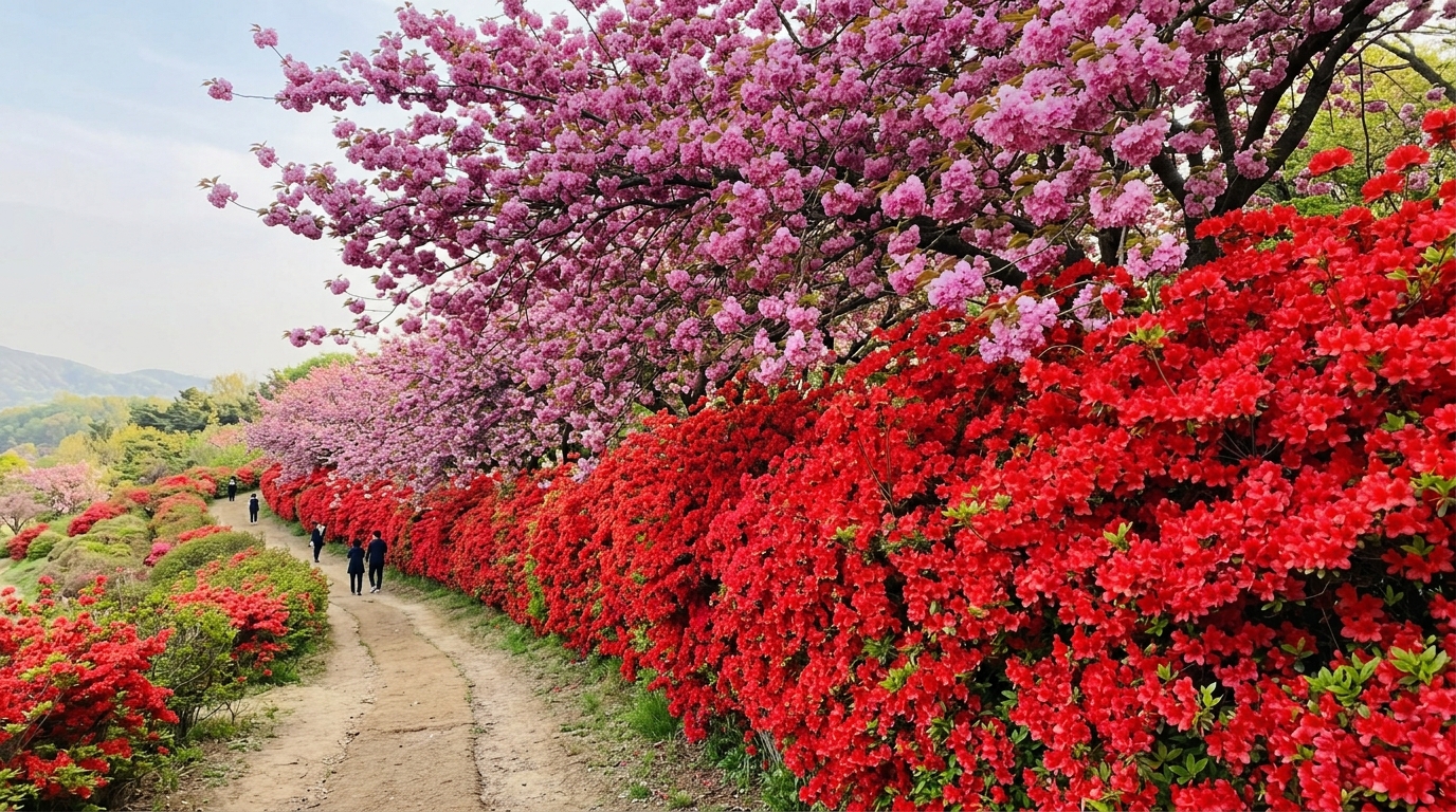 날씨 예보를 보면 다음 주 초반에 약한 비 소식이 있으니 가급적 이번 주 안으로 방문하시는 걸 권장해 드립니다. 철쭉과 영산홍도 비슷한 시기에 꽃망울을 틔워서 동산 전체가 울긋불긋한 수채화처럼 변해 있거든요. 솔직히 이 정도 규모의 꽃동산을 무료로 볼 수 있다는 건 정말 큰 혜택이지 않나요?