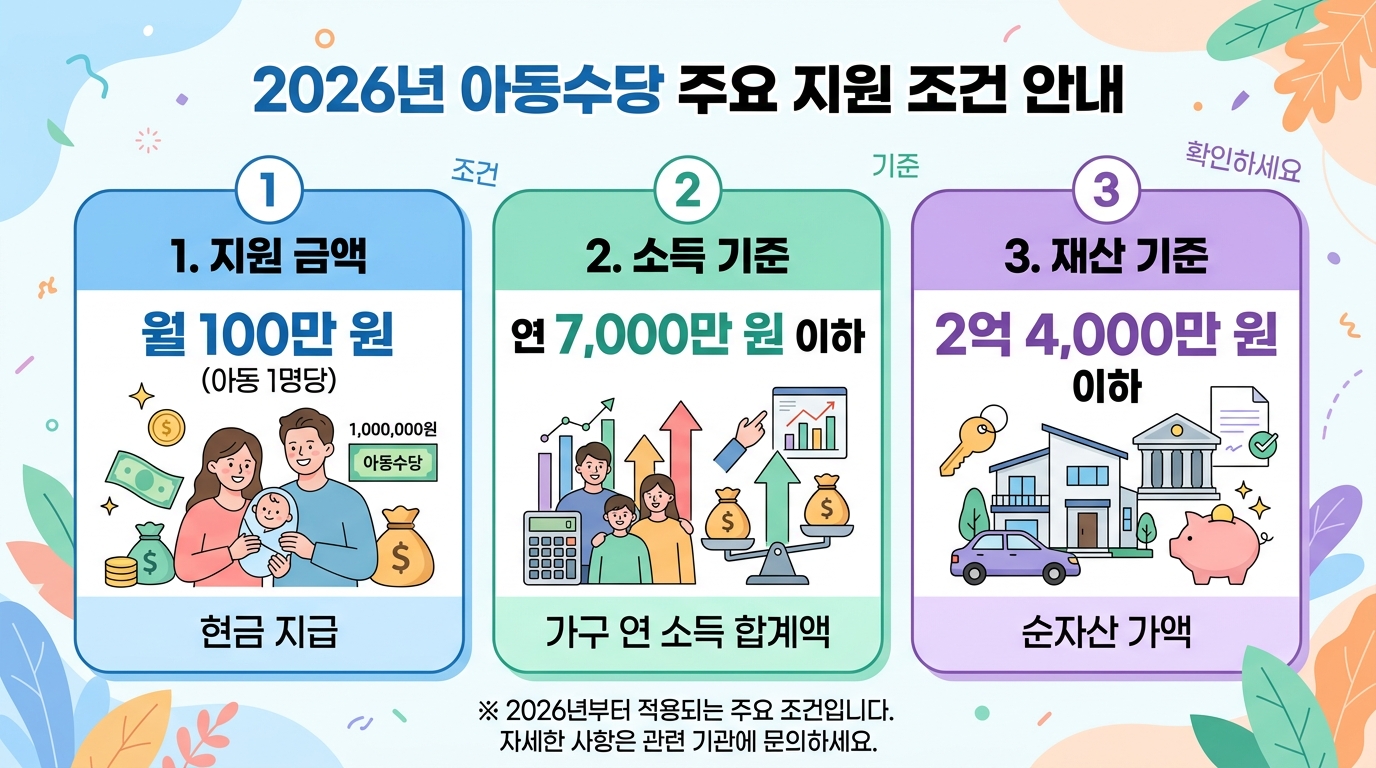 2026년 신청분(2025년 귀속)의 핵심은 재산 기준이 2.4억 원으로 유지된다는 점이에요. 하지만 재산이 1.7억 원을 넘어가면 지급액의 50%가 감액된다는 사실 알고 계셨나요?